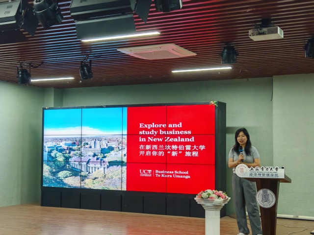为推进国际化人才培养合作,提升学院本科生国际视野,加深学生对经管学院与新西兰坎特伯雷大学合作项目的了解。4月17日,新西兰坎特伯雷大学商学院国际办公室负责人Tracy Zhai到访经管学院,并于经外楼A305报告厅举办专题宣讲会。活动聚焦新西兰高等教育优势、坎特伯雷大学学术资源及两校合作项目,经管学院2022级至2024级本科生代表参与。