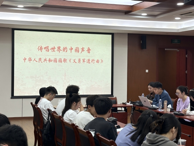 接着,蔡志杰则从创作背景、确立历程及国际传播三个维度详细讲解《义勇军进行曲》,结合音视频史料,剖析国歌中蕴含的民族精神与时代强音,并延伸至新时代青年如何在实现中国式现代化中挺膺担当,呼应了习近平总书记对青年“勇担使命、接续奋斗”的殷切期望。