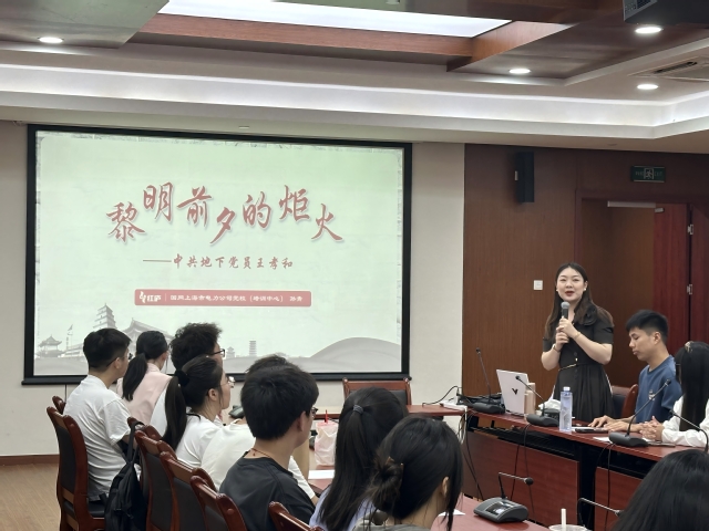 5月16日下午,经管学院邀请国网上海市电力公司党校(培训中心)孙青、蔡志杰在临港校区学术楼301为学院分党校入党积极分子培训班学员授课,他们以《黎明前夕的炬火——中共地下党员王孝和》和《传唱世界的中国声音——中华人民共和国国歌<义勇军进行曲>》为题,为学员们呈上了丰富的红色精神盛宴。