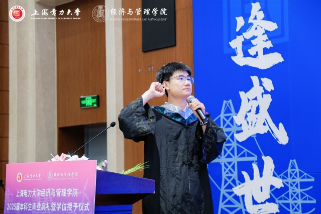 衷心祝愿全体2025届上电经管本科毕业生厚植家国情怀、涵养进取品格,以奋斗姿态激扬青春,不负时代,不负华年。在青春的赛道上奋力奔跑,争取跑出当代青年的最好成绩!