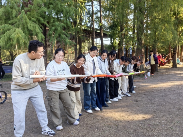 天高云淡,阳光和煦。为丰富研究生课余生活,增强班级凝聚力,提高新生适应能力和心理韧性,经管学院于11月15日在上海共青森林公园举办2025级研究生心理素拓活动。通过一系列素拓项目,让同学们在自然风光中放松身心,在团队协作中增进情谊。