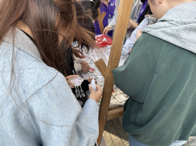 民族游戏区成为互动体验的热门打卡地。汉族传统游戏投壶趣味十足,在精准投掷中感受中华传统文化的雅致韵味;黎族跳竹竿则充满动感与协作性,师生们在欢声笑语中体验黎族人民的热情与活力,沉浸式感受传统游戏背后的民族智慧。