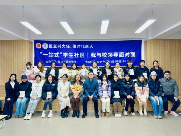 为深入学习贯彻习近平新时代中国特色社会主义思想和党的二十大精神,积极践行校党委提出的“六新”发展理念,扎实推进“一站式”学生社区建设,1月19日,校总会计师张川深入学生社区开展“担复兴大任,做时代新人”专题座谈会。经济与管理学院党委书记张艺、党委副书记孟延新、辅导员代表,以及国际经济与贸易、经济学专业20余名学生代表参加座谈会。会议由孟延新主持。