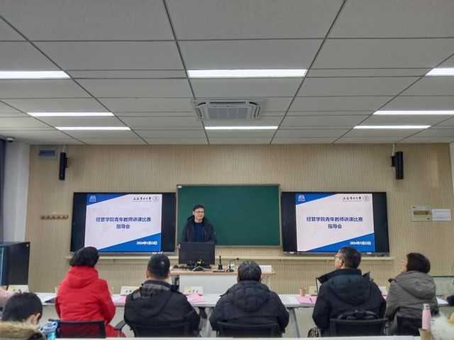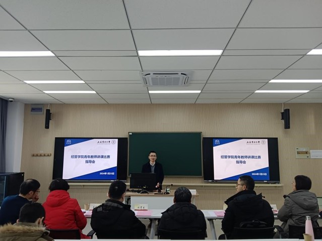 为扎实推进青年教师教学比赛选手备赛工作,提高青年教师的教学水平和教学能力,促进青年教师成长,2023年1月23日,经管学院在临港校区一教316智慧教室举办了青教赛现场模拟指导会。本次指导会邀请了上海电力大学督导组组长陈中华、上海电力大学校级督导刘贵生和上海海洋大学经济管理学院副院长陈延贵作为特邀指导专家。我校工会常务副主席毛静涛、教务处副处长徐信艳、经管学院常务副院长潘华、经管学院副院长侯建朝、经管学院副院长胡伟、经管学院工会主席容庆、上海市市赛参赛选手冷亚军及经管学院其他青年教师参加了指导会。本次指导会由胡伟主持。