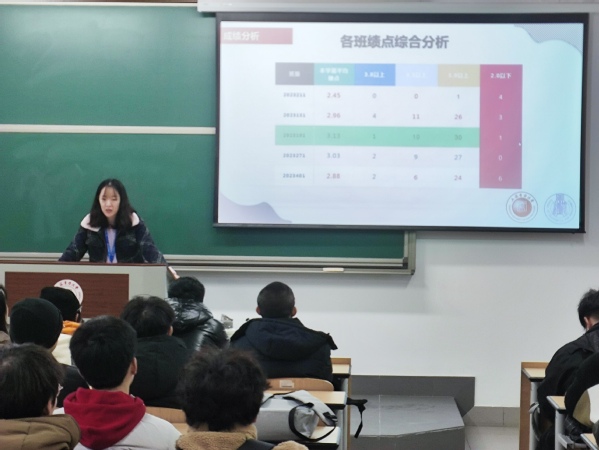 全体辅导员开展了“学情分析”主题班会,新生辅导员以“勤勉致知 砺行致远”为主题,进行上学期成绩分析。通过平均分、平均绩点、最高分、不及格人数给同学们真实的视觉冲击。提醒低于班级平均分与不及格同学加强学习,合理安排学习与娱乐时间,争取本学期成绩有一定提高。通过展示本学期各班级集体荣誉、个人荣誉获得情况,进一步激发同学们向上学习的动力。引导学生清晰、准确认知专业内成绩分布、挂科情况等。