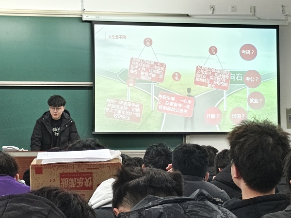 经管学院“头雁”领航服务站邀请工程管理系学生党支部优秀党员谢宸宇、工商管理系学生党支部党员陈雯玥、管理科学与工程系学生党支部刘世超进行榜样力量的分享,通过向同学们介绍成长历程鼓励同学们树立发展目标,从小事做起,从基层做起。同时邀请工程管理系教授赵文会老师进行专业的具体发展前景介绍,增强专业认同感,同时从考研与就业两个方面出发更加深入了解能服专业的相关知识,指导了学生该如何确立短期与长期目标,明确未来前进方向。