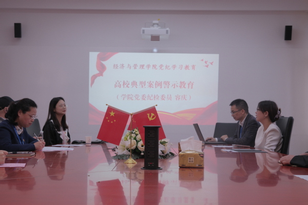 2024年4月22日、30日,经管学院党委在经外楼A509举行领导班子党纪学习教育读书班,深入学习贯彻习近平总书记关于党纪学习教育的重要讲话和重要指示精神,学习新修订的《中国共产党纪律处分条例》(以下简称“《条例》”),以最严的纪律要求和最高的学习标准,推动党纪学习往深里走、往实里走、往心里走。中心组学习由经管学院党委书记张艺主持。