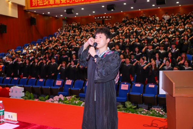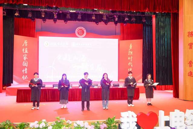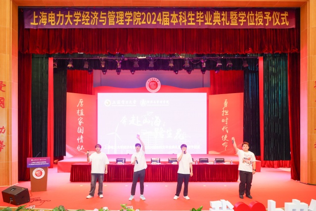 “铭记校训,爱国勤学,务实奋进,坚定理想信念,脚踏实地,砥砺前行,传承时代精神,不畏艰险,勇担使命,把个人理想追求融入党和国家事业之中,以青春之我、奋斗之我,为民族复兴铺路架桥,为祖国建设添砖加瓦。”铮铮誓言、字字铿锵!满怀激情的毕业献词呐喊出上电经管学子的心声与壮志。