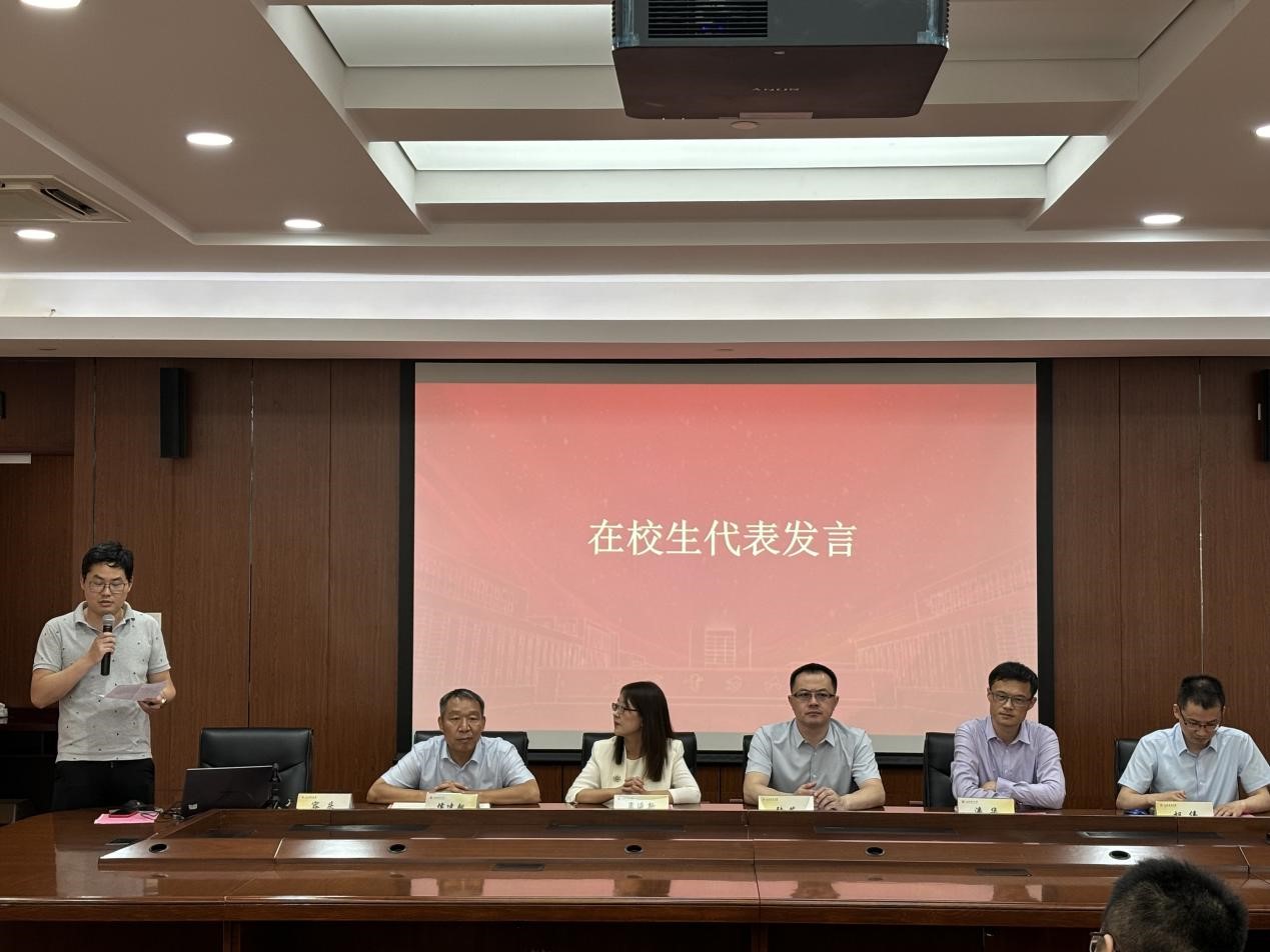 在校生赵文渊发言。他结合自身经历分享了四点感悟:保持好奇心,勇于探索未知;注重团队合作,积极沟通交流;坚持学习,合理规划时间;保持积极心态,勇于面对挑战。他鼓励新同学们珍惜宝贵的学习机会,勇于探索,敢于创新,不断超越自我,相信在电力大学的深造将助力他们未来在各自领域绽放光彩。