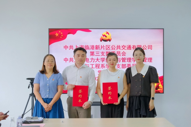为进一步落实新时代党建工作的新要求,促进党建与业务发展深度融合,创新党建联学共建新形式,9月25日,经济与管理学院管理科学与工程系学生党支部与上海临港新片区公共交通有限公司第三党支部在临港集卡中心党群服务站开展了党建联建交流会,会上双方党支部签订党建共建协议书。上海临港新片区公共交通有限公司第三党支部书记梁鸽峰、工会主席支部宣传委员曹依梅、经济与管理学院专职组织员周颖、党支部书记王卲萱以及双方支部党员参加了交流会。