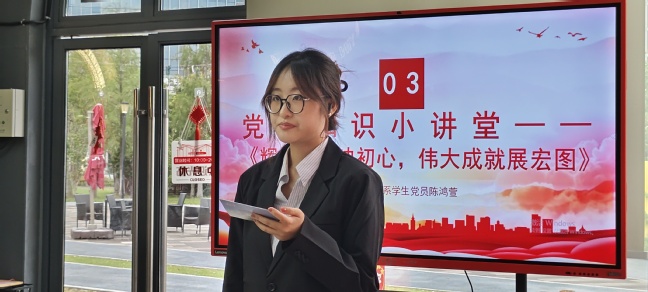 在“党员知识小课堂”环节,工程管理系学生党支部党员陈鸿萱带来了《辉煌党史映初心,伟大成就展宏图》主题宣讲,带领参加活动的党员们共同回顾党的辉煌历史,坚定党员们的初心和使命。随后,工程管理系学生党支部党员、上海市奖学金获得者李观华从有梦、追梦、圆梦三个部分讲述他在党的光辉照耀下的成长和改变,他的故事激励了在场的每一位同学,让大家深刻感受到了党员的责任与担当。最后,工程管理系学生党支部研究生党员王鹏程通过《绿动未来:双碳科技赋能绿色发展》主题讲座,向同学们展示了双碳推动绿色发展的重要性。