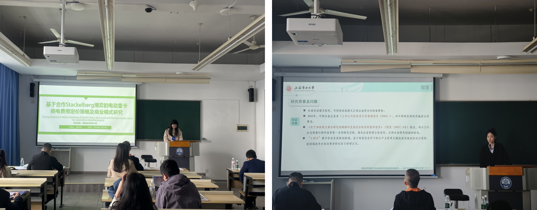 此外,本届大会一共设置了优选学与优化管理、统筹学与项目管理、经济数学与金融风险管理、供应链与运作管理、决策优化与企业经营管理、能源与复杂系统管理等主题的17个专题交流论坛。我院硕士研究生林郭牧田、杨辉、钱鸿和马佳佳等分别在优选学与优化管理、能源与复杂系统管理等平行会议上做了题为《基于改进DTW双层聚类和Bi-LSTM的居民用户需求响应潜力预测模型研究》《基于系统动力学的中国可再生能源市场型政策组合效果研究》《基于合作Stackellberg博弈的电动重卡换电费用定价策略及商业模式研究》以及《群体决策视角下企业绿色投资的提升机制研究》的主旨报告。
