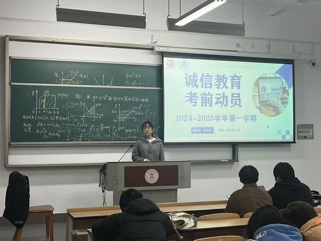 展晴晴在诚信班会中还特别邀请了专业成绩优异的同学来分享复习备考经验。郑涵月同学从制定合理学习计划、梳理知识点的技巧等多个方面娓娓道来,为其他同学提供了实用且有效的备考思路。通过学霸分享,不仅强化了学生们诚信考试的观念,也助力他们更科学地准备即将到来的考试。