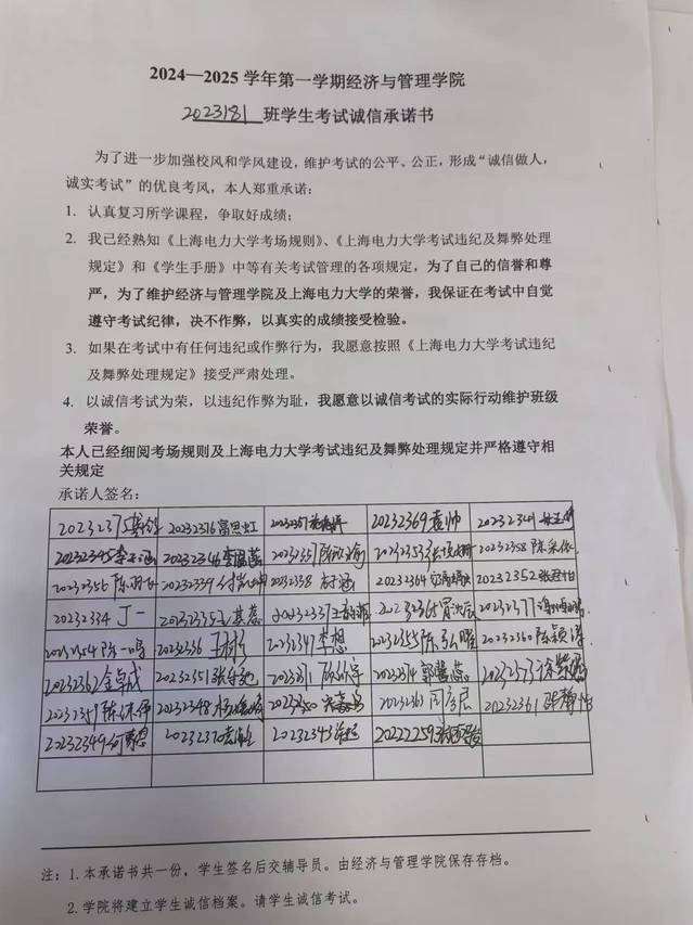 经管学院所有班级通过年级QQ群、班级群等网络媒介,在考前进行考试纪律和警示教育。同时安排班长、学习委员等班委、学生党员与班级学生进行诚信结对,进行诚信考试宣传和监督。所有班级全覆盖签署了考试诚信承诺书。
