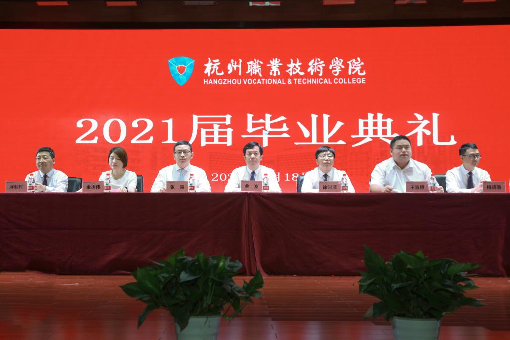 年年桃李,岁岁芬芳。6月18日,杭职院2021届毕业典礼隆重举行,又一批杭职学子即将离开校园,起航崭新征程。本次毕业典礼采取线上线下结合的方式。校党委书记金波,校长徐时清,华为浙江政企业务部常务副总经理张夷,吉利汽车集团产教协同经理王宜恒,校党政领导班子成员,二级学院班子成员,相关部门负责人,教师代表、辅导员、班主任、2021届省级优秀毕业生和毕业生代表参加线下活动,全体毕业生参加线上直播。毕业典礼由校党委副书记陈泉淼主持。