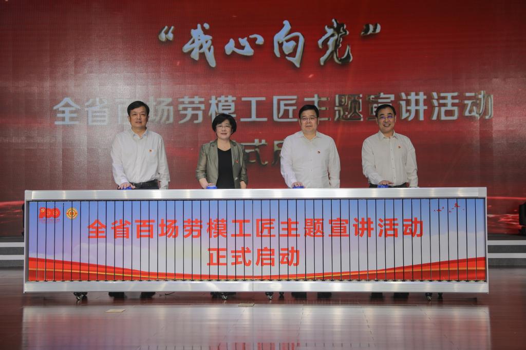 随着张卫华、王卫安、金波与劳模工匠宣讲员代表姚玉峰共同开启启动装置,“我心向党”全省百场劳模工匠主题宣讲活动正式启动。