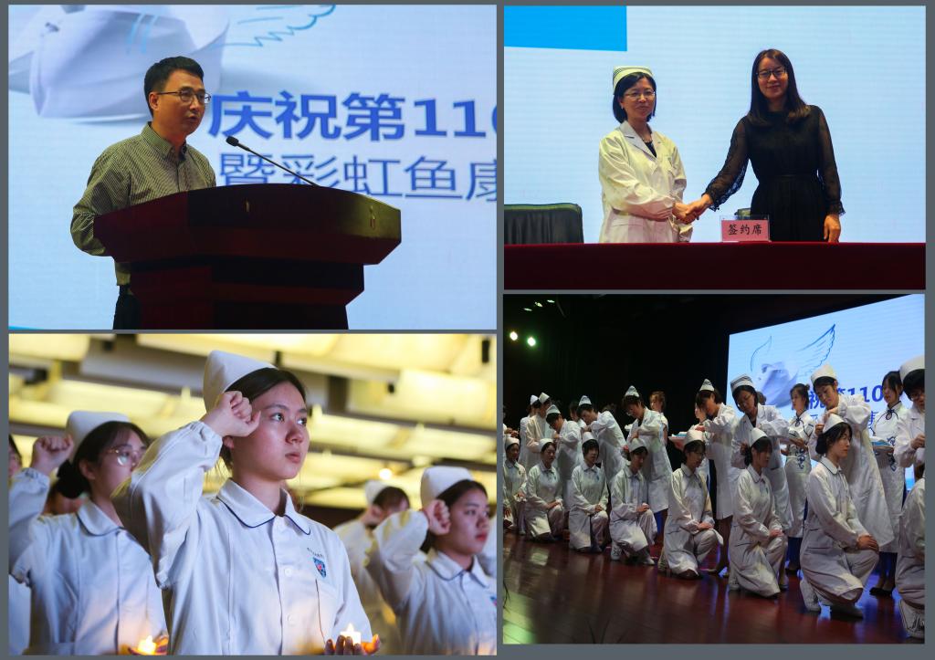 楼晓春在祝贺护士节的同时,对同学们提出殷切的期望。护理前辈、学生代表也分别发言。授帽仪式在庄严的乐曲声中进行,249名护生接受前辈为自己戴上圣洁的燕帽,接过前辈手中蜡烛,聆听前辈的赠言,并站在南丁格尔像前集体宣誓。