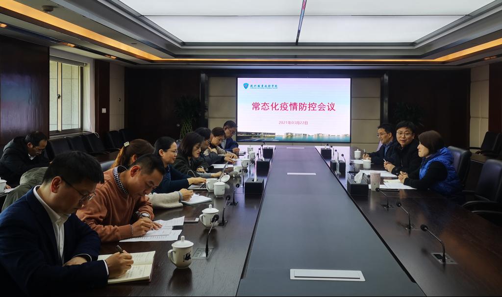 为贯彻省防控办《关于一步精准实施新冠肺炎疫情防控工作的通知》(2021年【35】号)文件精神,研究部署当前疫情防控工作,3月22日下午,学校常态化疫情防控工作会议在508会议室召开。学校常态化疫情防治工作小组全体成员参会,组长徐时清校长,副组长金徐伟副校长出席会议并做了重要讲话。