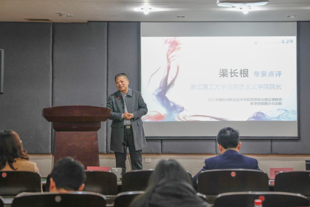 1月4日下午,马克思主义学院首届思想政治理论课教师教学技能展示与诊断活动在行政楼第三会议室举行。此次活动由学校党委宣传部、质量监控与评估处、教师发展中心、专业建设指导处联合指导,马克思主义学院主办。学校党委副书记陈泉淼出席活动并致辞,指导部门负责人出席活动并担任评委。活动特邀中国红色文化研究会常务理事,浙江省高校《毛泽东思想和中国特色社会主义理论体系概论》教学研究会会长,光明网、新华网、人民网、央视网特约评论员,浙江理工大学马克思主义学院院长渠长根,中国科教评价研究院副院长、浙江省哲学社会科学规划“十三五”学科组专家、浙江省高等教育科学理事会常务理事、浙江财经大学马克思主义学院院长贺武华担任评审专家,现场诊断指导。马克思主义学院院长邹宏秋、直属党支部书记张崇生分环节合作主持了活动。全体思政专任教师,部分兼课教师观摩了此次活动。