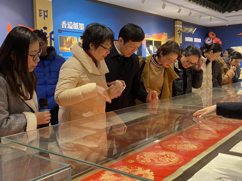 座谈会前,调研组在校党委书记金波的陪同下,参观了浙乡非遗馆。