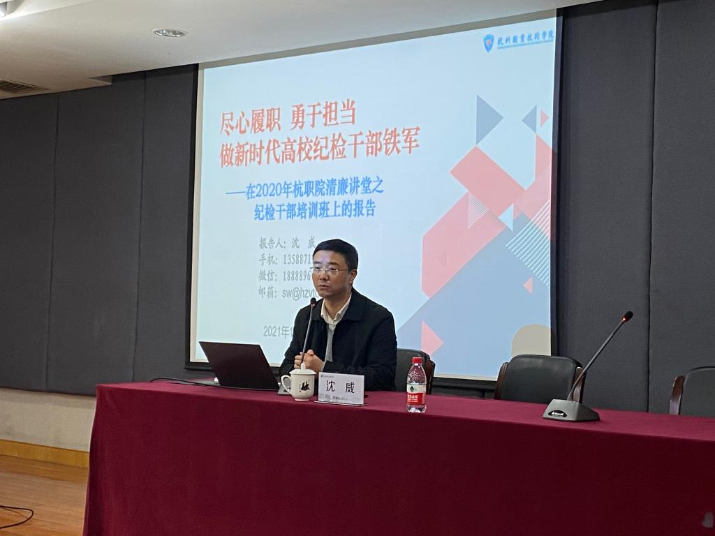 校党委委员、纪委书记沈威作《尽心履职,勇于担当,做新时代高校纪检干部铁军》专题报告,从“为什么、我是谁、干什么、怎么干、一起干”五个层面展开,从高校纪检干部角色和身份定位谈起,结合学校违纪违法案例探讨了高校纪检干部的职责和履职路径,提出了今后一段时期学校党风廉政建设工作重点任务。