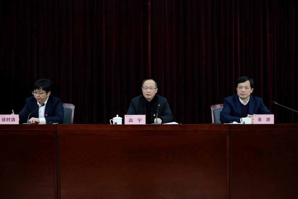 为深入学习贯彻习近平总书记重要指示精神,全面总结学校党史学习教育的收获与经验,进一步巩固拓展党史学习教育成果。1月17日下午,学校在行政楼二楼报告厅召开党史学习教育总结会议。杭州市教育局党史学习教育第五巡回指导组组长、市教育局党委委员、副局长高宁出席会议并讲话。学校领导班子成员金波、徐时清、陈泉淼、金徐伟、楼晓春、程利群、麻朝晖,全体中层干部、党支部书记、部分党员师生代表参加会议。会议由党委副书记、校长徐时清主持。