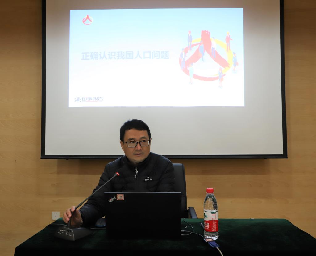 楼晓春从习近平总书记在第七次人口普查登记时的重要论述“我国是世界上人口最多的国家,人口问题始终是一个全局性、战略性问题”引出本次思政课主题。他立足我国人口现状,从人口问题“全局性”、人口发展“特别性”、人口形势“辩证性”三个方面层层递进、层层深入,通过大量详实的数据,生动贴切的案例,为在座的师生剖析了我国人口基本国情和人口与“民生”“生态”的密切关系,阐述了“总量”“质量”“结构”为重点的我国人口新特点,回答了“人口红利”“老龄化”“低生育”等人们密切关注的人口发展新问题。图文并茂的PPT,通俗易懂的讲解帮助在座的师生加深了对“人口发展是关系中华民族发展的大事情”的重要主题的理解,更为学生辩证认识中国人口问题,树立正确人口观进行了有效梳理和引导。