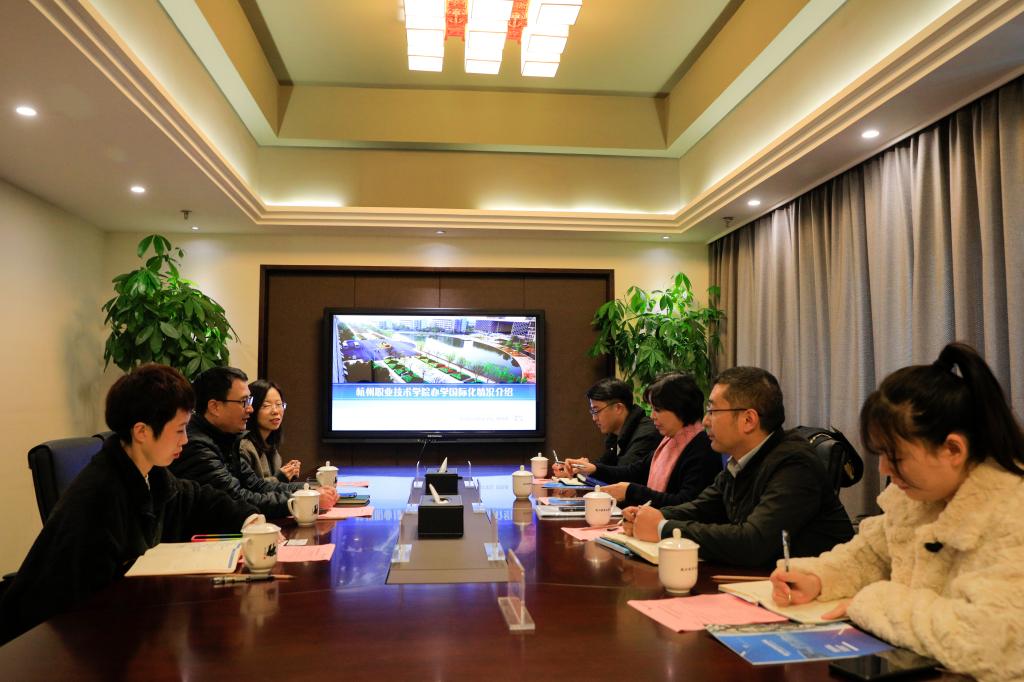 11月24日上午,浙江省中华职业教育社国际职业教育专门委员会主任、AICC国际教育中心董事长吴丽芳一行来校调研国际化工作。副校长楼晓春、国际交流合作处相关负责人参与接待。