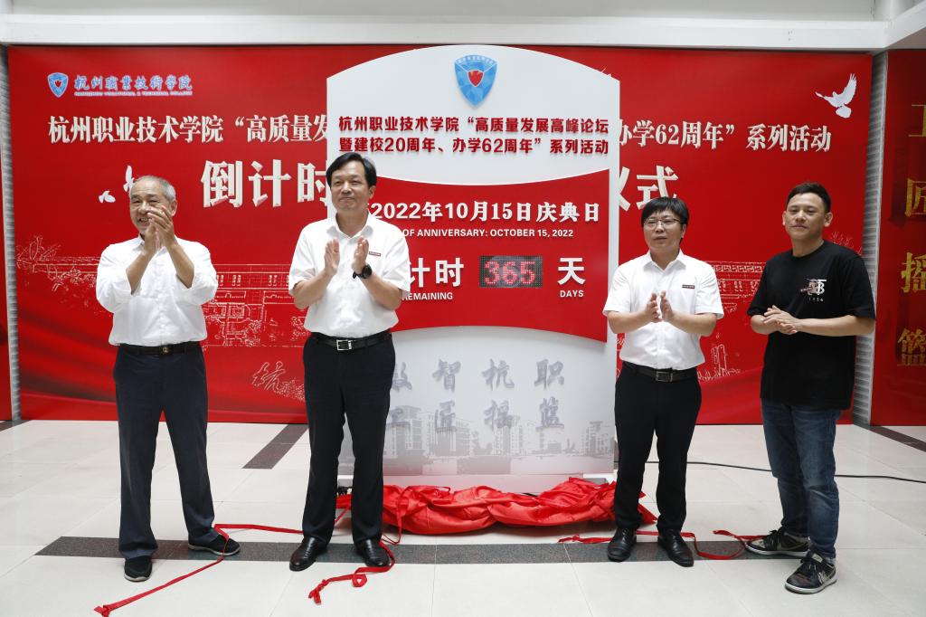 薪火相传六十载,荣耀见证新时代。10月15日下午,杭州职业技术学院“高质量发展高峰论坛暨建校20周年、办学62周年”系列活动一周年倒计时启动仪式在学生活动中心一楼大厅隆重举行。学校党政领导班子成员金波、徐时清、陈泉淼、金徐伟、楼晓春、程利群、麻朝晖,全体处级以上干部、离退休教职工代表、教师代表、学生代表、校友代表参加。启动仪式由金徐伟主持。