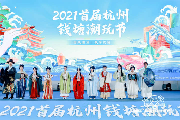10月9日,由杭州市钱塘区人民政府主办的2021首届杭州钱塘潮玩节在国际创博中心正式启幕。作为钱塘区年度创新产业盛会,邀请区内高校和创新企业在现场集中亮相,一站式汇集钱塘区产业与教育创新发展的最新成果。我校副校长程利群出席“钱塘潮IP文创联盟”成立仪式暨钱塘江诗路IP创意设计大赛启动仪式,花艺国赛获奖的园艺专业同学现场表演艺术插花,校国风社同学联合万事利丝绸在“钱塘潮”主题文创产品发布仪式上开展汉服表演,吸引大批国风爱好者驻足观赏,将潮玩节推向新一轮高潮。