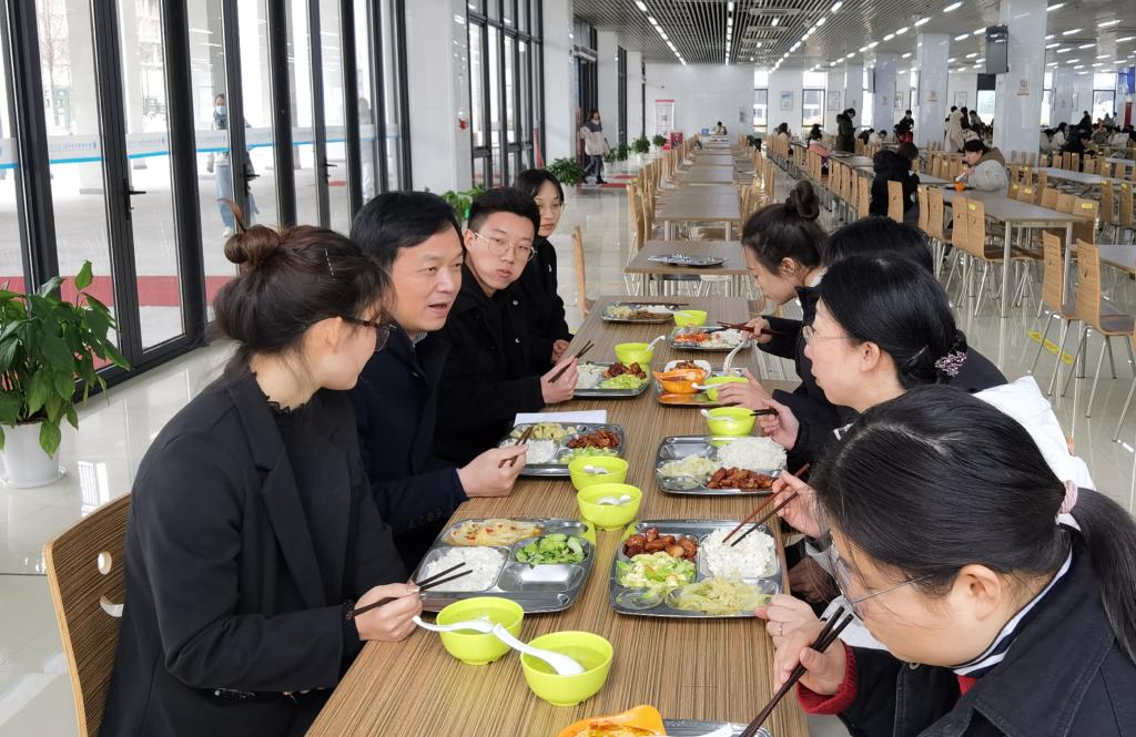 就餐过程中,金波与同学们面对面亲切交流,边吃边聊,关切地询问了学生们的学习生活情况。5名同学畅谈了对学习生活的感受,表达了对学校建设发展的美好期待,围绕校园环境、专业学习等方面话理想、说困惑、谈建议。金波对同学们提出的问题和建议进行了一一回应,鼓励同学们继续扎实专业技能,发挥专业所长,在校园文化建设中贡献更多力量。
