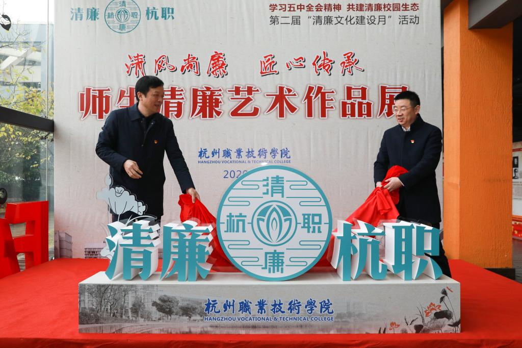12月18日上午杭州职业技术学院举办第二届清廉文化建设月活动启动仪式暨“清风尚廉 匠心传承”师生清廉艺术作品展
