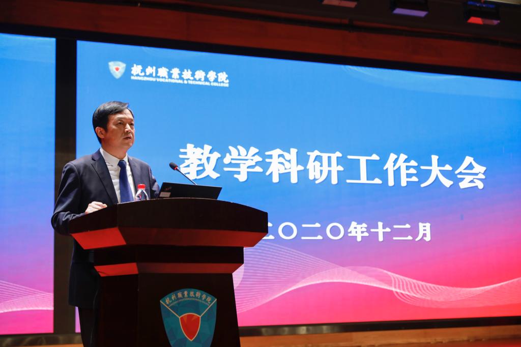党委书记金波在总结讲话中对全体教职员工提出要求:一是更加注重内涵发展,增强职业技术教育适应性,不断深化改革,在内涵提升上下功夫,实现高质量、高水平发展;二是更加坚持教学中心地位,提高教学本领,着力推动课堂革命,着力优化课程内容;三是更加注重创新驱动,产出标志性科技创新成果,坚定走“特色科研”之路,推动教学与科研有机结合;四是更加突出人才强校战略,持续推进师德师风建设,加快高层次人才建设力度,加快打造高水平“双师”队伍;五是更加重视立德树人,立根铸魂、引导学生厚植爱国主义情怀,精技强能、引导学生培育工匠精神,知行合一、引导学生成就出彩人生。他希望全体党员和领导干部“先干一步、想深一层、干实一点”,作好表率、当好先锋、做好示范,敢于带头啃硬骨头、打攻坚战;希望广大教职工进一步提振精神状态,坚定发展信心,切实增强责任感和使命感,以主人翁和生力军的身份,拿出拼劲、闯劲、干劲,以忘我的拼搏精神参与“双高”、助力“双高”、奉献“双高”、建好“双高”,用高质量的“双高”成绩报表展示杭州职业教育的“头雁风采”。