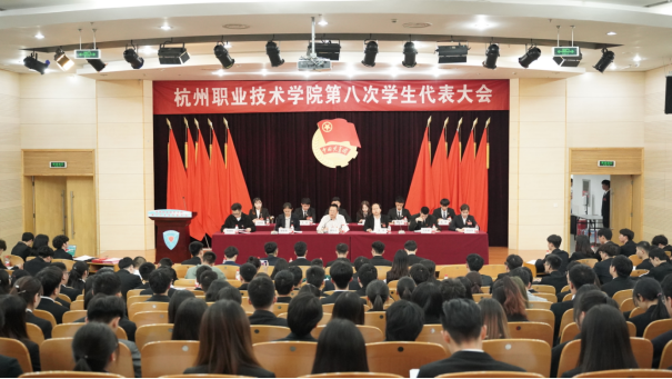 11月18日,杭州职业技术学院第八次学生代表大会在行政楼二楼报告厅正式召开。校党委副书记陈泉淼, 学工部部长江平, 团委副书记楼黎瑾,市学联主席郑明辉,兄弟院校学生会代表,以及来自各二级学院的325名学生代表出席了开幕式。
