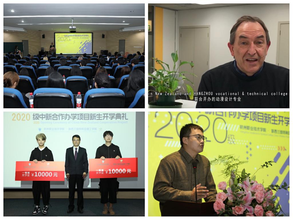 受疫情影响,新西兰维特利亚理工学院奥克兰校区校长Bryan、数字媒体专业负责人(新西兰维特利亚理工学院项目经理)Brenda通过视频连线,对进入本届中新合作办学项目学习的同学表示祝贺,并希望同学们积极参与实践,享受学习。