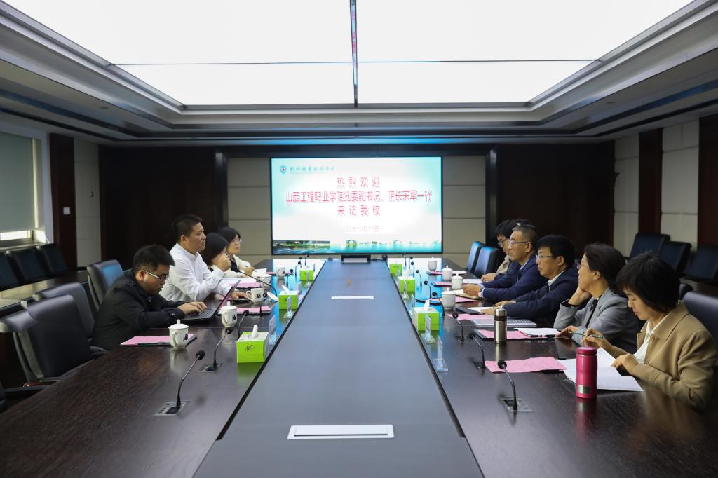 10月19日上午,山西工程职业学院党委副书记、院长宋军一行来访我校。我校副校长陈加明,党政办、人事处、专业建设指导处、发展研究中心相关负责人参与接待。