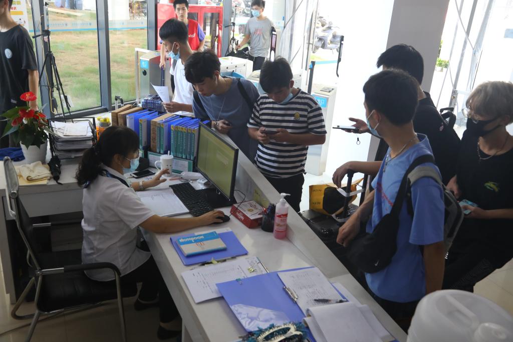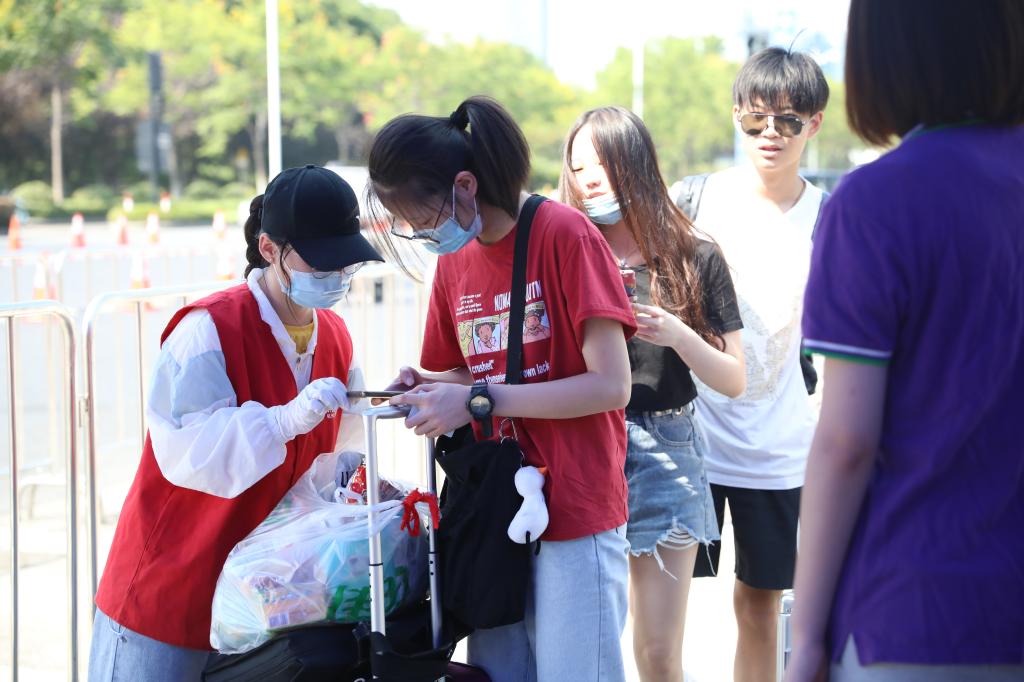 报到当天,党委副书记陈泉淼前往报到现场,仔细查看报到流程及开学相关工作的开展情况。报到现场,返校学生均按照要求佩戴口罩,保持1米间距有序报到,严格经过查验校园通行码、核对身份、测量体温等流程后进入校园;党员教师志愿者和前期返校的学生志愿者们为报到学生提供了暖心服务,学生志愿者帮助返校学生一起搬运行李,确保了报到通道的顺畅;在学生宿舍区,返校学生再次经过亮码、测温、消毒后进入各自寝室。