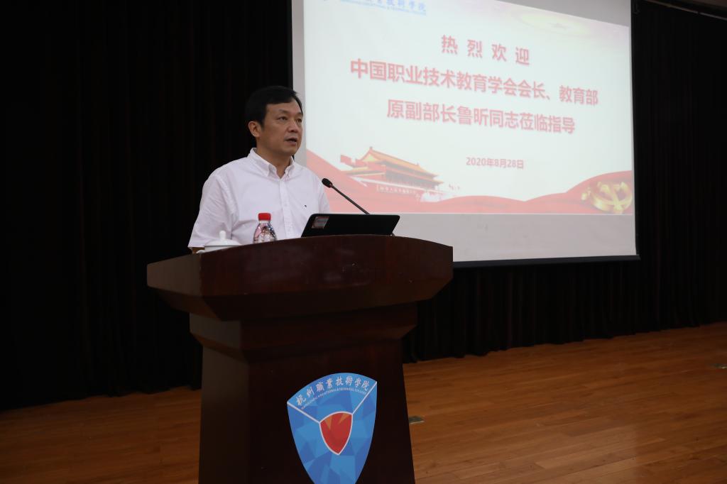 8月28日下午,中国职业技术教育学会会长、教育部原副部长鲁昕应邀来到我校行政楼报告厅,作题为“新经济、新技术、新格局、新职业、新专业”的专题学术报告。我校党政领导班子成员、全体中层干部、学校六届一次“双代会”正式代表、专业负责人、高职称教师共同出席会议。报告会由我校党委书记金波主持。