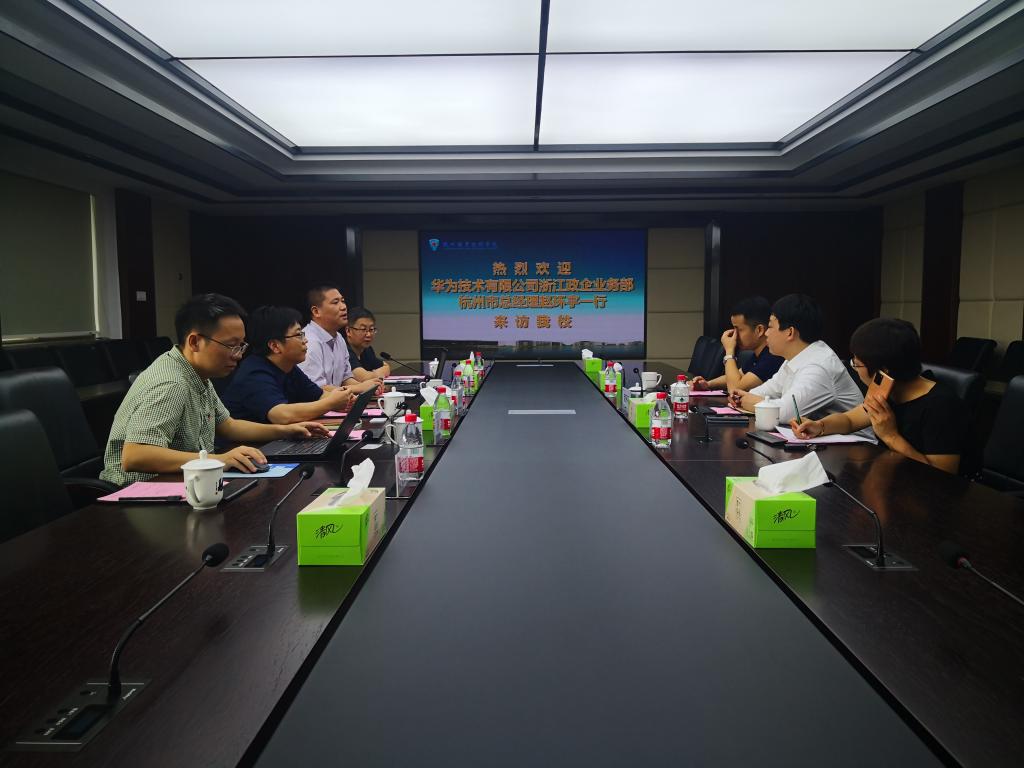 8月7日上午,华为技术有限公司浙江政企业务部杭州总经理赵环宇一行来访,校长徐时清、副校长陈加明,党政办、信息化建设与管理中心、信息工程学院等单位负责人参与接待。