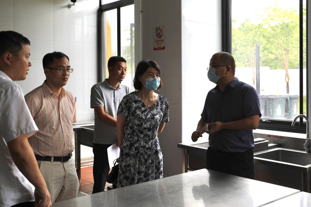 期间,金徐伟、钱江等一行人先后实地检查了学校新学生食堂、教工食堂,仔细检查食材采购、储存、加工和食品留样、人员健康管理、冷链管理、餐具及场所消毒等重点环节。