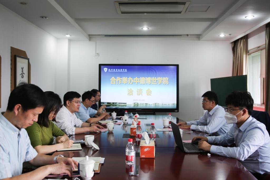 贾文胜对李秀峰一行的到来表示热烈欢迎,并表示学校将积极推进与博世公司的合作,学习借鉴德国“双元制”经验,依托博世公司,探索本土化“双元制”育人模式,打造校企双元协同育人的浙江样版。会上,双方就中德合作试点项目的合作模式、培养方案等相关事宜进行了深入交流和探讨。