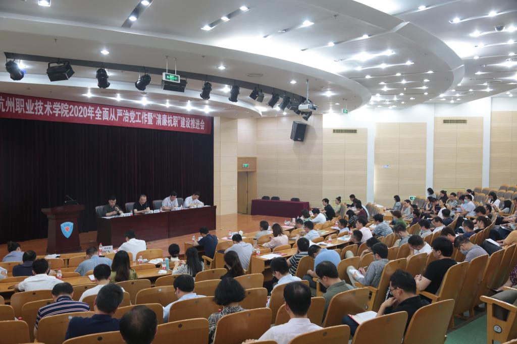 5月15日上午,我校在行政楼报告厅召开了2020年全面从严治党工作暨“清廉杭职”建设推进会,总结回顾了2019年学校全面从严治党工作,系统部署2020年主要工作任务。市教育局党委委员、市纪委监委派驻市教育局纪检监察组组长赵清平出席会议并讲话。全体校领导班子成员、中层干部、校纪委委员、二级党组织纪检委员、专职纪检干部、党支部书记及部分师生代表参加了会议。会议由党委副书记、校长贾文胜主持。