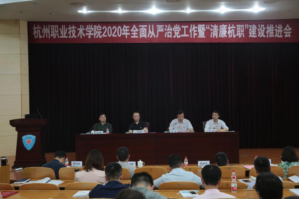 校党委书记金波从思想政治建设取得新成效、干部人才队伍水平实现新提升、基层组织建设赢得新成绩、党风廉政建设适应新常态、巡察和审计整改取得新成效、清廉杭职建设展现新面貌等六个方面,对2019年学校全面从严治党工作取得的成绩给予充分肯定。同时,他指出,对标习近平总书记和党中央对全面从严治党的新要求,新时代高校党建的新任务和学校师生员工的新期待,学校全面从严治党工作还存在主体责任压得不够实、意识形态阵地管控不够牢、基层党组织作用发挥不够强、党员干部教育管理抓得不够紧、廉政风险排查管控不够全、财经纪律不够严等问题。下一步,需要把全面从严治党工作与学校重点工作有机结合,将相关问题和薄弱环节的整改工作成效转化为推动“双高”建设的强大动力。