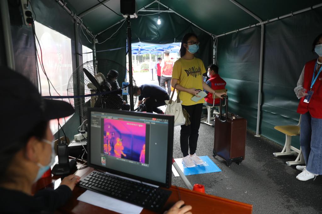 报到当天,各部门、各二级学院通力合作,各项工作平顺有序。报到通道外,保卫人员在属地交警和公安的支持下,引导家长车辆即停即走,教职工车辆有序进出校园;报到通道内,每条通道的地面上都清晰标注了等候线,学生保持前后1米以上安全间距,排队进入候检区,经过严格的亮码、测温等程序后依次进入校园;学生公寓内,学生在工作人员引导下,规范开展二次亮码、测温和消毒等相关工作;报到环节中,学生出现发热等异常情况,立即转至二次测温区由校医护人员进行专业的应急处置;与此同时,党员教师志愿者和前期返校的学生志愿者们为报到学生提供了暖心服务,及时提醒返校学生提前做好报到流程的材料准备、校验,帮助返校学生一起搬运行李,确保了报到通道的顺畅。