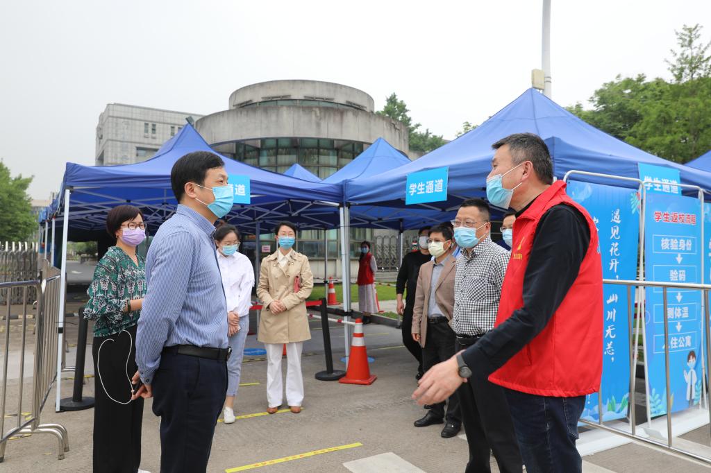 5月6日至7日,校党委书记金波、校长贾文胜、党委副书记陈泉淼等校领导,在党政办、学工部、保卫处、公共事务管理处、资产经营公司等部门负责人陪同下,实地检查开学返校工作情况。