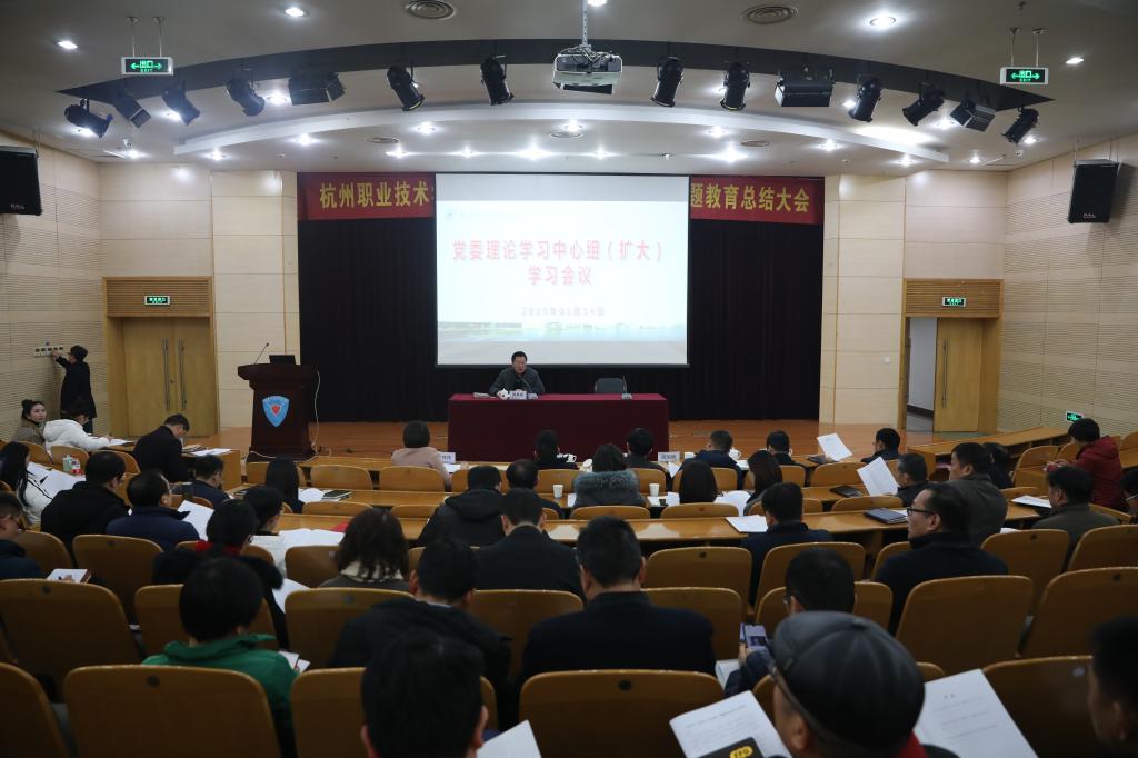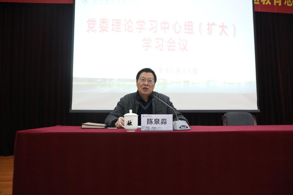 1月14日下午,我校在行政楼报告厅召开了党委理论学习中心组(扩大)学习会议。学校党政班子成员、全体中层干部、支部书记参加了会议。会议由党委委员、宣传部部长程利群主持。