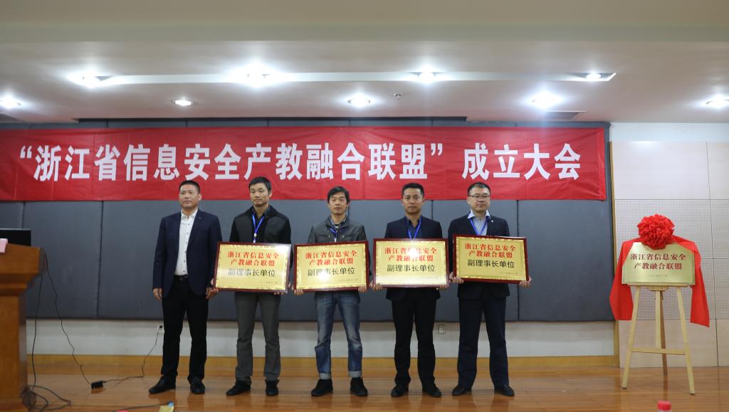 浙江省信息安全产教融合联盟是由浙江省高职和中职院校、相关行业、企业、出版社等法人单位自愿参加的全省性、 非营利集团化民间研究组织。按照“平等互利、资源共享、合作共赢、共谋发展”的原则,服务国家安全战略和“一带一路”倡议,以校企双元育人机制培养信息安全领域技术技能人才而组建的跨行业、多层次、综合性的非独立法人职教联盟。本次成立大会上,全体会员单位审议并通过联盟章程。教育厅领导与校领导共同为浙江省信息安全产教融合联盟揭牌,并向理事长单位、副理事长单位和理事单位授牌,我校当选浙江省信息安全产教融合联盟理事长单位。会议邀请高职、中职、企业代表从校企合作、专业标准制定、人才培养、技能竞赛等方面进行经验分享和交流。