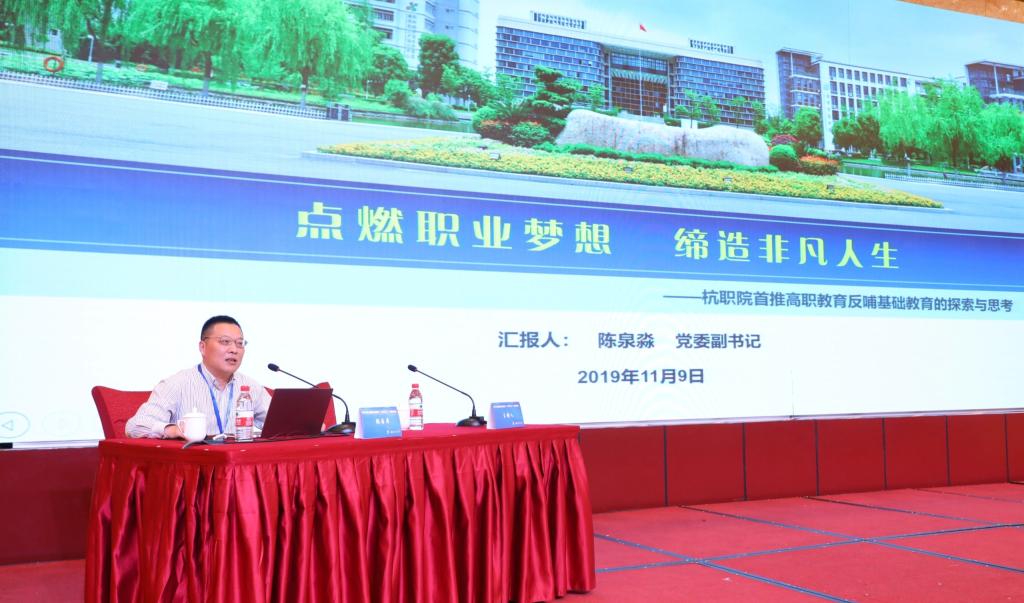 11日上午,陈泉淼作了题为《点燃职业梦想 缔造非凡人生---杭职院首推高职教育反哺基础教育》的专题报告。他从“教育资源优势”“专业课程优势”“职业生涯规划优势”三个方面系统分析了我校开展劳动教育和职业启蒙教育的思考,重点介绍了我校青少年职业体验中心创建方面的“运作机制”“考核机制”“推进机制”“协同机制”实践探索和开展成效。陈泉淼表示,下一步我校将以“双高计划”建设为新起点,以打造青少年职业体验“杭州模式”为目标,建好“一个联盟”“一个中心”“一个基地”“一批课程”,推动立德树人根本任务的落实落地落细。