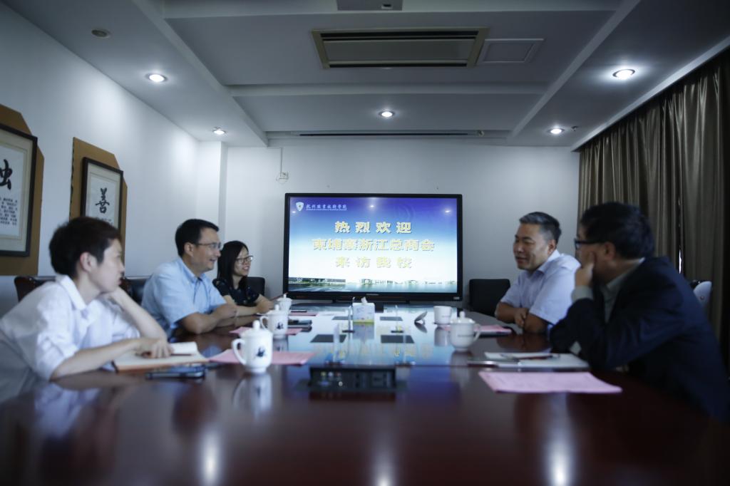 为认真贯彻落实教育部《推进共建“一带一路”教育行动》等重要文件精神,抓住“一带一路”建设重大机遇,主动融入和服务“一带一路”倡议。9月18日上午,柬埔寨浙江总商会副会长赵普洲在浙江省商务厅驻新加坡(亚洲)代表张汉东老师的引荐下来访我校。我校副校长楼晓春及相关部门负责人共同参与接待。