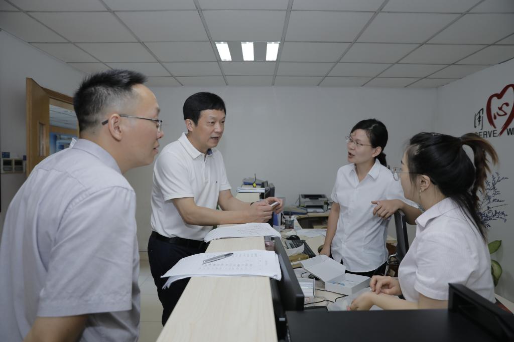 9月7日,新学期开学第一天,党委书记金波、党委副书记陈泉淼共同走访各职能部门,实地检查指导开学相关准备工作。党政办、党委宣传部等相关人员陪同。